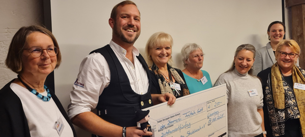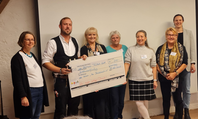 Am Dienstag, 7. Oktober, überreichte Max Fritsch von der Zimmerei Fritsch GmbH einen großen Spendenscheck über 250 € an die Stricklieseln. Als kleines Dankeschön haben die Stricklieseln für die Zimmerei einen Handwerksgesellen gehäkelt, der fortan im Büro über die Bauprojekte wachen wird.