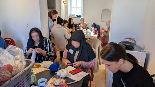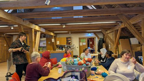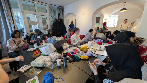 Beim Häkeln und Stricken vernetzen sich die Frauen untereinander, tauschen sich aus und sprechen mit uns über ihre Wünsche und beruflichen Ziele.
